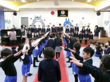 寂しくなってしまうけれど、「ありがとう」「卒園おめでとう」の気持ちを込めてみんあでお歌やメッセージをおくりました。 -
