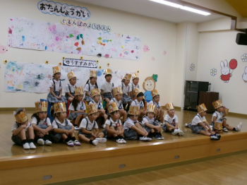今日は7・8・9月生まれのお友だちのお誕生会でした!たくさんのお祝いをもらい、嬉しそうな子どもたちでした(^-^)お手伝いいただいた役員の方々、ありがとうございました!