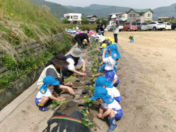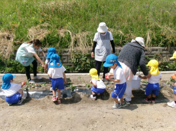 さつまいもの苗を植えました!「大きくなってね!!」と声をかけながら土をかぶせたり、水やりをする微笑ましい姿がありました♡